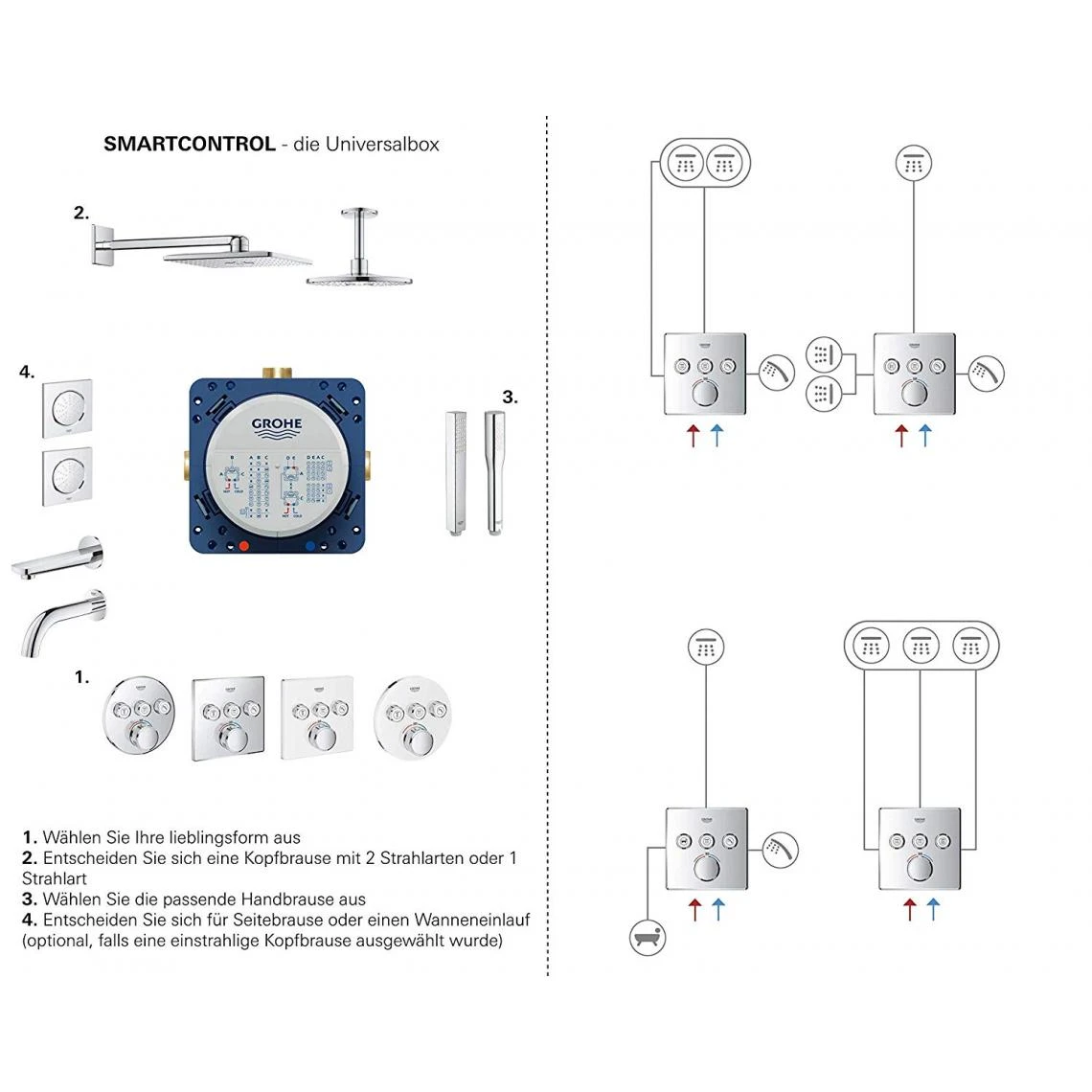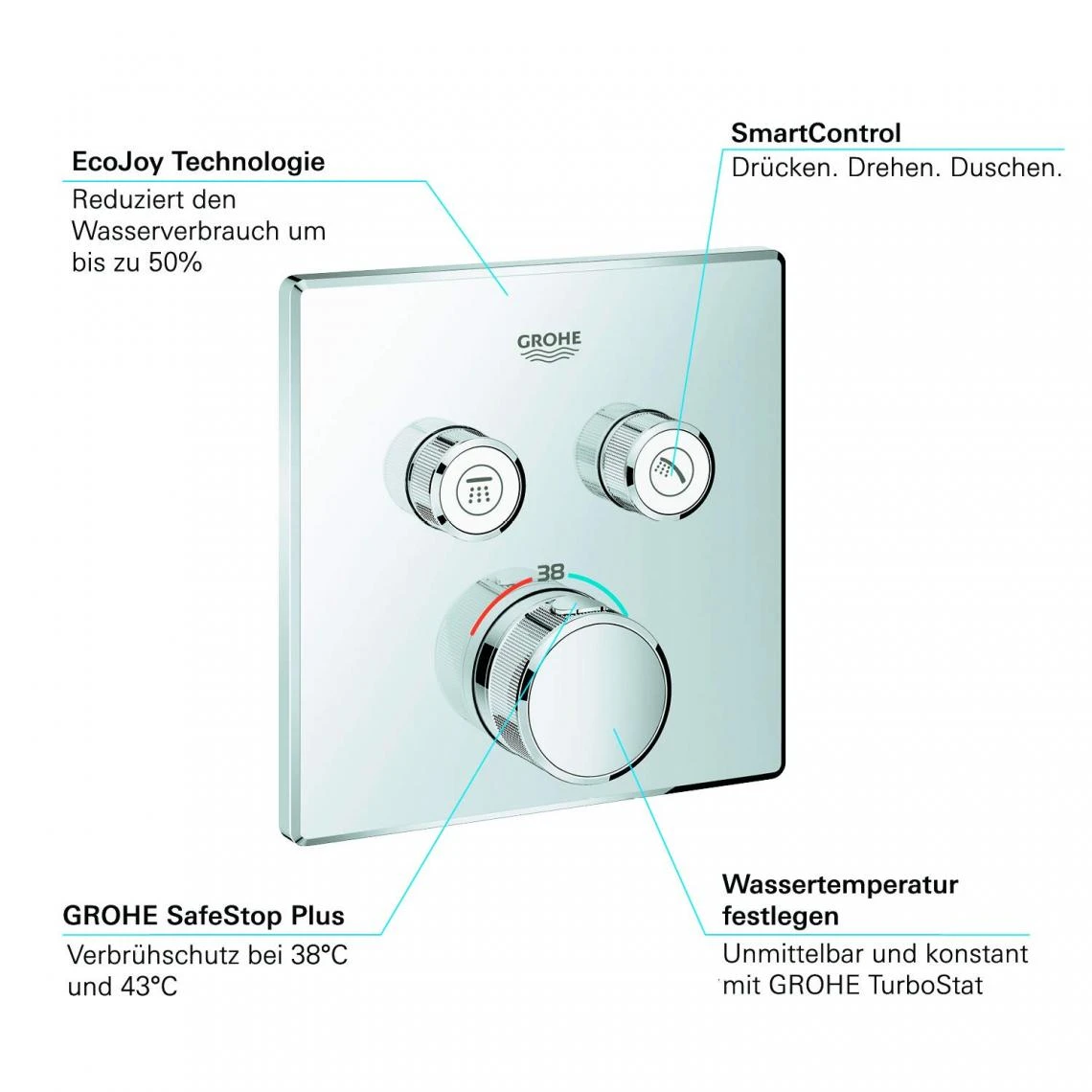 Points forts Grohe GROHE 29124000 Grohtherm SmartControl Thermostatique pour installation encastrée 2 sorties, Chrome