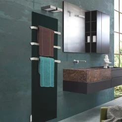 Radiateur électrique à rayonnement extra plat 750W 1800x400mm noir – ILO Technology. Laissez vous séduire par ce radiateur ILO extra plat, discret et faisant aussi office d’objet déco et convertible en sèche serviette. CARACTERISTIQUES TECHNIQUES : . – Type de produit : Radiateur électrique mural. – Marque : ILO Technology. – Modèle : Crystal. – Matière : Verre. – Coloris : Noir (avec ou sans Thermostat). – Dimensions : 180×40 cm. – Puissance électrique : 750W. – Surface à traiter : 15m2. – Type de chauffe : Rayonnant. – Élément chauffant : Film chauffant rayonnant. – Tension : 240 Volts. – Convertible en sèche serviette : Oui. – Livré avec : Fixations, barres en inox sèche-serviette. – Certifications et normes : IP44. – Fabrication française. CE QUE NOUS AIMONS :. Bénéficiez d’un confort thermique optimal grâce à la technologie de chauffage par rayonnement de ce radiateur ILO. En effet le ce radiateur électrique vous assurera une montée en température rapide et une chaleur douce, naturelle et diffuse dans votre pièce. Ce radiateur fait aussi office d’objet déco et saura s’intégrer dans n’importe quelle pièce de votre intérieur. Petit plus non négligeable, ce radiateur Crystal est convertible en sèche serviettes électrique grâce à l’ajout de barres en inox chromées incluses. Ce chauffage ne brasse pas d’air et ne carbonise pas de poussière pour vous assurer une qualité d air intérieur toujours égale. Cet émetteur de chauffage mural joue la carte de la discrétion de par son ultra compacité et son silence de fonctionnement. L’installation de votre radiateur est facile et rapide grâce à son systeme de fixation unique. Et cocorico ! Ce panneau en verre radiant est un pur produit de fabrication française.