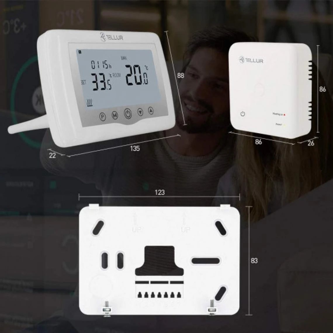 Tellur WiFi Thermostat est un ensemble de moniteur de 3,7 pouces et d’un Ă©metteur qui vous permettent de contrĂ´ler votre système de chauffage manuellement ou directement via votre tĂ©lĂ©phone. Ils sont compatibles avec la commande vocale d’Alexa et Google assistant afin de vous faciliter son contrĂ´le.